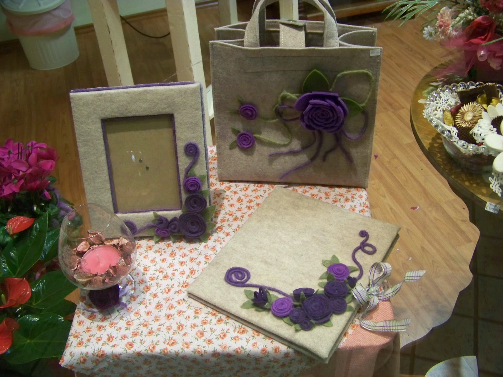 This is the right window of my shop, what I show is created around a set with felt, albums, frames lined with cloth bag and cream (excuse the pun;) and purple felt flowers ...